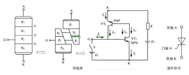 当要关断晶闸管时,只要我们把阳极A与阴极K之间的电流减小到一定值的时候,这个晶闸管的阳极A与阴极K之间就像断开一样,无法有电流通过。或者我们把晶闸管的阳极A的电压低于阴极K的电压也可以关断这个晶闸管。